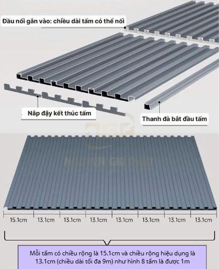 Sản phẩm mái hợp kim nhôm tại Nguyễn Gia Phát có các thông số: