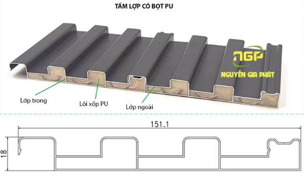 - Mái hợp kim nhôm lõi xốp PU cách nhiệt