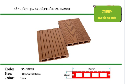 SÀN NHỰA GỖ COMPOSITE NGOÀI TRỜI 25x140x2900 – GIẢI PHÁP NGOẠI THẤT BỀN ĐẸP TẠI NGUYỄN GIA PHÁT