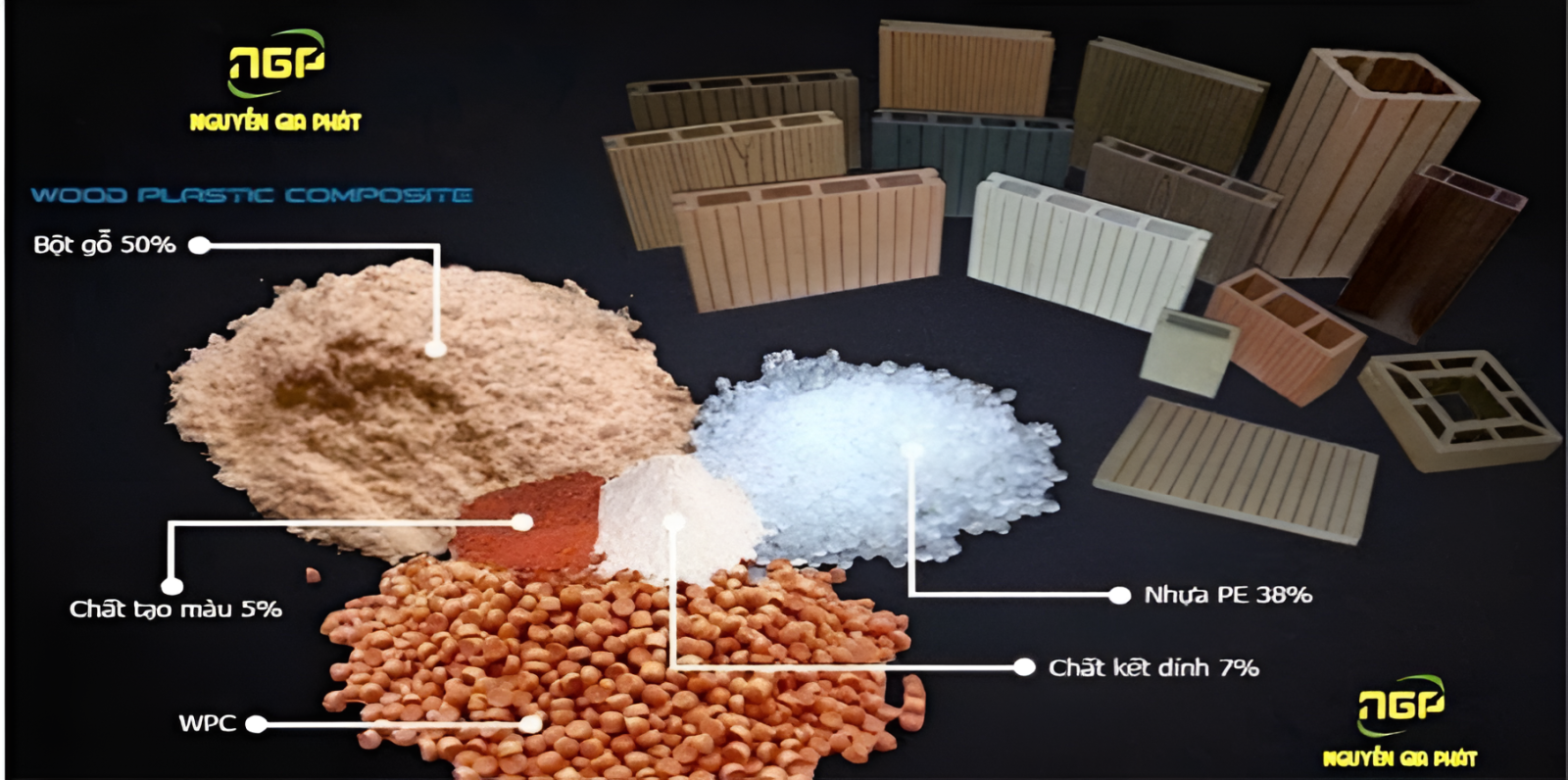Sàn nhựa gỗ composite (WPC – Wood Plastic Composite) là vật liệu được tạo thành từ bột gỗ tự nhiên kết hợp với nhựa PE và các phụ gia chuyên dụng. Nhờ cấu trúc này, sản phẩm vừa giữ được vẻ đẹp của gỗ, vừa có độ bền vượt trội của nhựa.