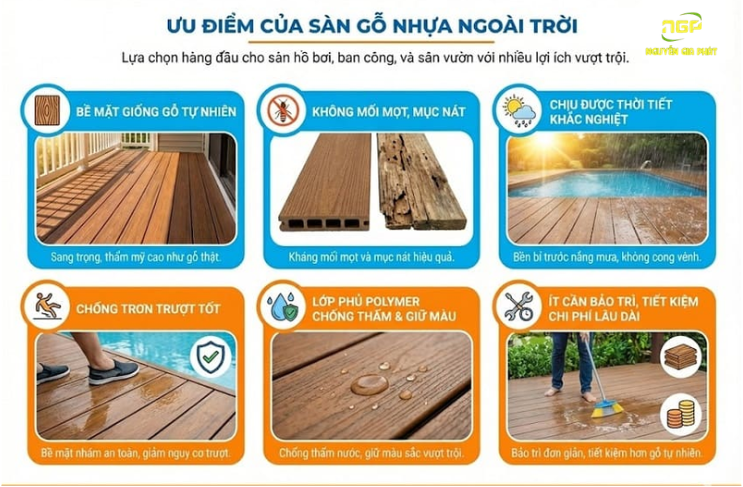 Sàn nhựa gỗ composite tại Nguyễn Gia Phát được khách hàng lựa chọn nhờ các ưu điểm: