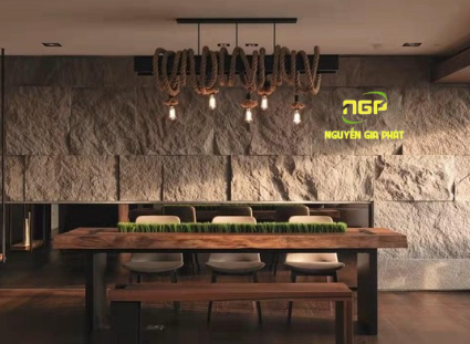 Ngoài ra tấm PU giả đá, Nguyễn Gia Phát cũng cung cấp các vật liệu ốp tường sang trọng khác như: tấm ốp trần tường nano, tấm PVC vân đá, tấm ốp than tre,... giúp nâng tầm không gian sống nội thất một cách nhanh chóng.