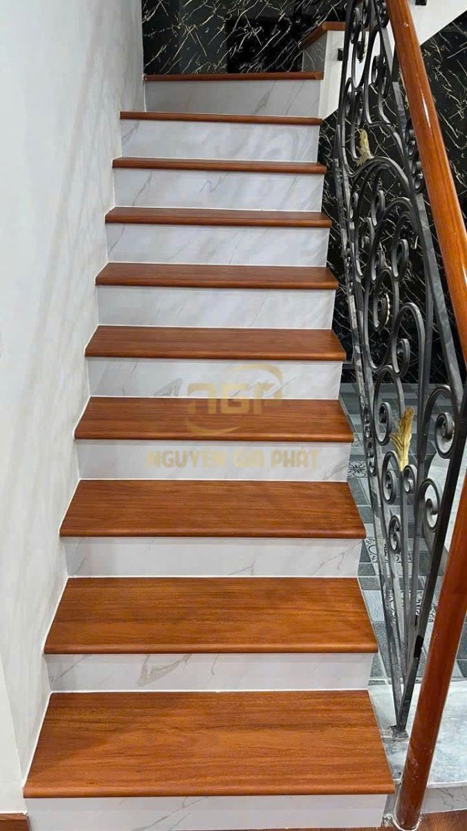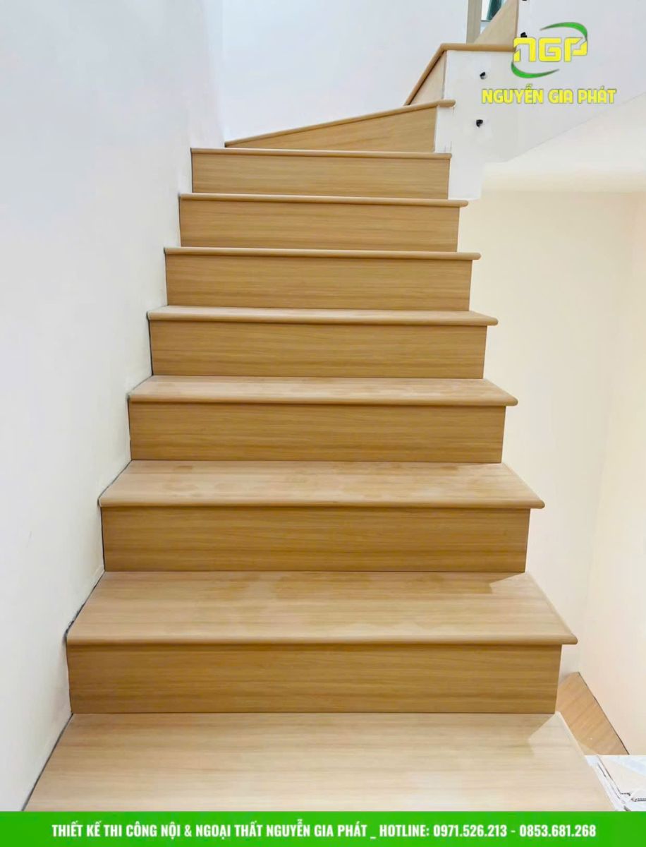Bậc cầu thang có nhiều mẫu mã, vân gỗ, vân đá, màu sắc phong phú, phù hợp với mọi phong cách từ ấm cúng, gần gũi đến hiện đại, tối giản.