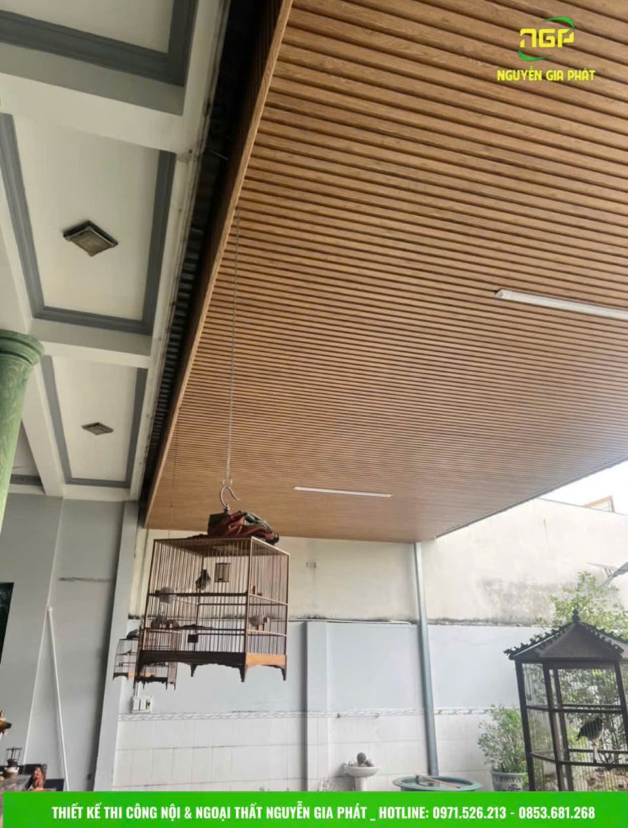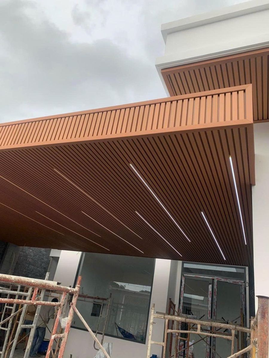 Lam sóng gỗ nhựa ngoài trời được ứng dụng rất phổ biến để ốp tường ban công, sân thượng. Nhờ khả năng chống nóng, chịu mưa nắng và không bị mối mọt, vật liệu này giúp giảm tác động của thời tiết lên công trình, đồng thời tăng tính thẩm mỹ. Khi kết hợp cùng ánh sáng tự nhiên, lam sóng gỗ nhựa mang lại cảm giác sang trọng, hiện đại cho không gian ngoại thất.