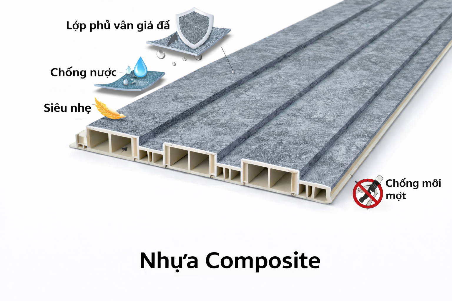 2.3 Chống ẩm mốc – không cong vênh
