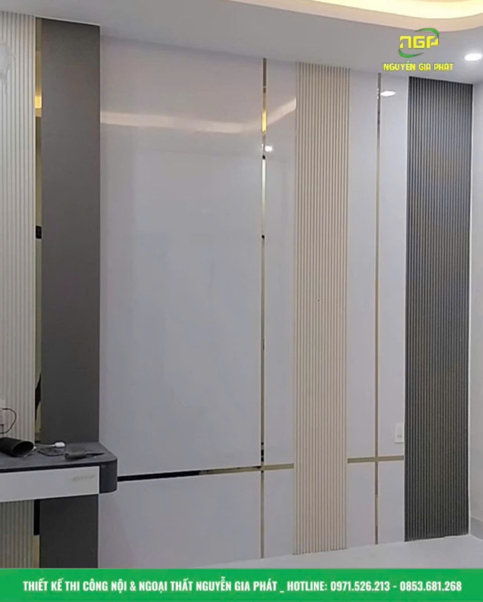 Bạn có thể dùng tấm PVC giả đá, nano, than tre, lam sóng rất đẹp… nhưng chỉ cần mối nối hở – góc xấu – mép tấm lộ là toàn bộ vách tường nhìn kém sang ngay lập tức.