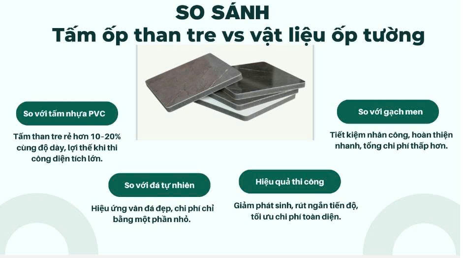 So với các vật liệu truyền thống như đá tự nhiên hoặc gỗ, tấm ốp than tre có trọng lượng nhẹ và dễ thi công hơn rất nhiều.