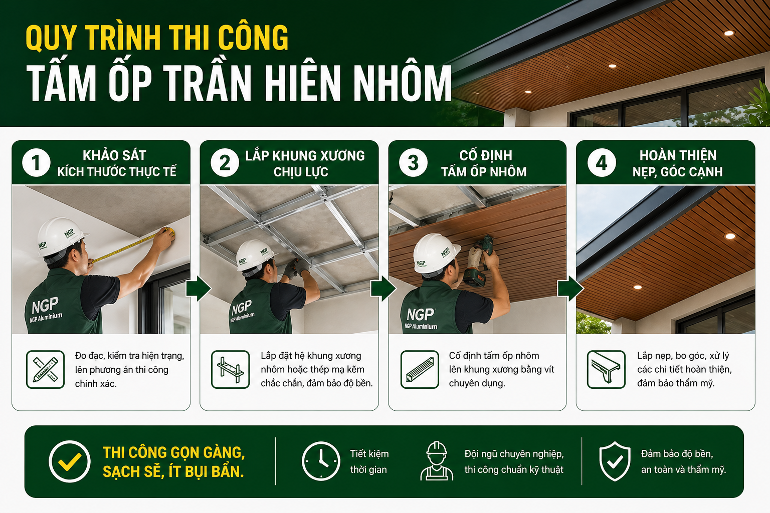 6. Quy trình thi công tấm ốp trần hiên nhôm