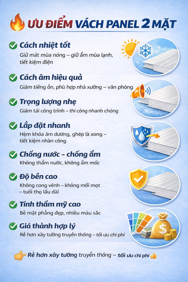 | Tiêu chí | Vách panel 2 mặt | Tường xây |